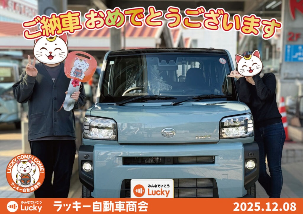 トップページ 2024.12.102025.09.08 NEWS・EVENT 新着情報 ラッキーからのお知らせ 月間スケジュール 2025.12.272026.02.03 グループ各店舗の営業日と電話受付時間 2025.09.172025.12.25 中古車入荷情報 2025.12.242025.12.25 事業拡大のため人材募集 2025.12.25 車パーツ販売 2025.12.13 スタッフブログ 寒ければ脇は結構暖房 2026.01.14 漢が集まると密度熱が半ハンパない! 2025.12.23 寒くて漢の笑顔を忘れがち 2025.12.05 車検・定期点検・板金・修理・オイル交換等のご予約はこちらから ラッキー自動車商会の経営理念と会社概要について 沖縄県内初の格安スピード25分車検システムClear25民間車検工場 ラッキー自動車商会のLINE公式アカウントで様々なご相談に対応いたします 事故・故障時は保険会社の前に自動車救急隊へご連絡ください キズヘコミやリペア修理専門の本店第1板金塗装工場と保険事故を専門とする第2板金塗装工場 ラッキー自動車商会では一緒に働いてくれるスタッフを募集しています TV-CMでもお馴染みの楽喜家の紹介と過去のCMライブラリー ご納車おめでとうございます! 2025年12月8日 浦添市のI様 タフト納車 2025年12月6日 名護市のH様 タント納車 2025年12月6日 南風原町のT様 N-BOX納車 2025年12月4日 那覇市のN様 アルト納車 2025年12月4日 糸満市のT様 ジムニー納車 過去の納車式はこちらから Instagram 広報 2025年12月8日 浦添市のI様 タフト ご納車おめでとうございます! #納車式 ラッキー自動車商会、工場の2月のスケジュールです。 赤色の日はお休みとなっております。 2025年12月6日 名護市のH様 タント ご納車おめでとうございます! #納車式 2025年12月6日 南風原町のT様 N-BOX ご納車おめでとうございます! #納車式 さらに読み込む Instagram でフォロー Instagram 販売スタッフ うちの仲里くん(営業)は器用でマメですねー😆 お客さんのためだからねー✨ #ラッキー自動車商会 装備のいいNワンにゅうこです! ナビもでかい!しかもターボ! 走りを楽しんで下さい😊 #ラッキー 新型キャリートラック!展示中です! 顔がカッコよくなって 安全性能が良くなってます! #ラッキー スペーシアカスタムハイブリッドXS 人気者のハイグレード! #中古車 #suzuki #スペーシ さらに読み込む Instagram でフォロー YouTube 広報 今日の特選車 #アクア #ラッキー自動車商会 ヴォクシーZS #中古車 #ラッキー自動車商会 TikTok 広報 @luckycarpr
