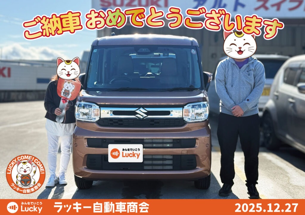 トップページ 2024.12.102025.09.08 NEWS・EVENT 新着情報 ラッキーからのお知らせ 月間スケジュール 2025.12.272026.03.31 グループ各店舗の営業日と電話受付時間 2025.09.172025.12.25 中古車入荷情報 2025.12.242025.12.25 事業拡大のため人材募集 2025.12.25 車パーツ販売 2025.12.13 スタッフブログ ナイスミドル!珈琲は甘くても微糖で!! 2026.03.20 コーティング施工は漢の腕試し 2026.02.08 寒ければ脇は結構暖房 2026.01.14 車検・定期点検・板金・修理・オイル交換等のご予約はこちらから ラッキー自動車商会の経営理念と会社概要について 沖縄県内初の格安スピード25分車検システムClear25民間車検工場 ラッキー自動車商会のLINE公式アカウントで様々なご相談に対応いたします 事故・故障時は保険会社の前に自動車救急隊へご連絡ください キズヘコミやリペア修理専門の本店第1板金塗装工場と保険事故を専門とする第2板金塗装工場 ラッキー自動車商会では一緒に働いてくれるスタッフを募集しています TV-CMでもお馴染みの楽喜家の紹介と過去のCMライブラリー ご納車おめでとうございます! 2025年12月27日 糸満市のO様 スペーシア納車 2025年12月26日 南風原町のC様 フィット納車 2025年12月26日 那覇市のO様 ヴェゼル納車 2025年12月26日 豊見城市のC様 ライズ納車 2025年12月14日 八重瀬町のM様 クロスビー納車 過去の納車式はこちらから Instagram 広報 2025年12月27日 糸満市のO様 スペーシアご納車おめでとうございます! #納車式 2026年4月のスケジュールです。 赤の日は本店工場・クリア25おきなわ(車検場)がおやすみとなって ラッキー自動車紹介では年に一度の大決算フェアを開催中です! 期間:3月14日(土)~4月12日(日) ラッキー自動車商会では大決算フェア開催中です! 土曜日限定でキッチンカーのクーポン券をプレゼントして さらに読み込む Instagram でフォロー Instagram 販売スタッフ 新車で買うと135万円くらい! #ラッキー自動車商会 #中古車販売 #新古車 #アルト ハイブリッド?! #ラッキー自動車商会 #中古車販売 #ハイブリッド #ハイゼット 新型ムーヴ! 中古ですが高年式低走行! 入庫しましたよー! #ラッキー自動車商会 #中古車販売 おはようございます ラッキー自動車商会店長の宮平悟史です 4月12日まで 年一度の大決算還元フェア さらに読み込む Instagram でフォロー YouTube 広報 今日の特選車 #アクア #ラッキー自動車商会 ヴォクシーZS #中古車 #ラッキー自動車商会 TikTok 広報 @luckycarpr