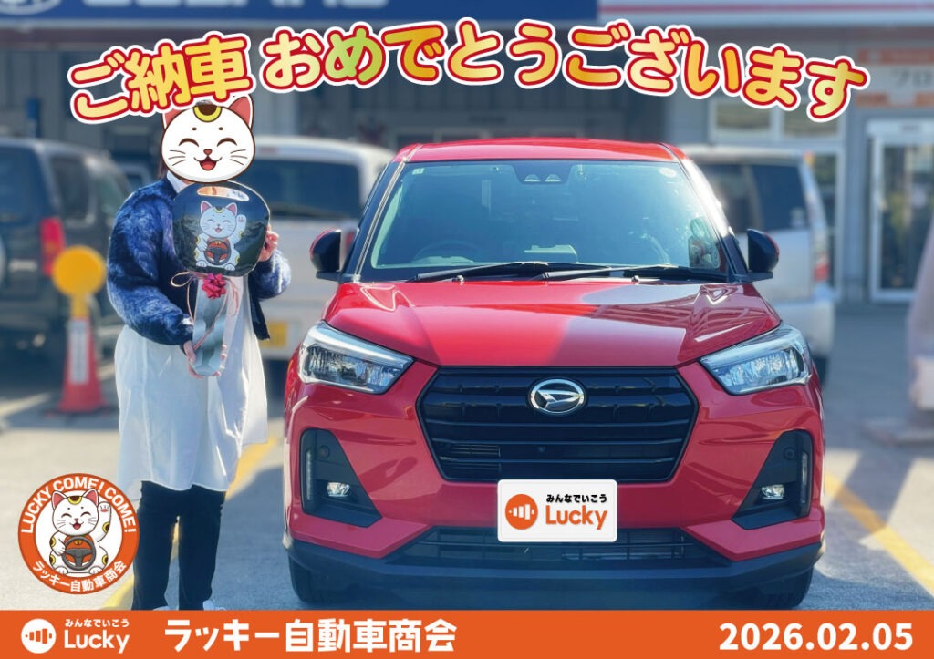 トップページ 2024.12.102025.09.08 NEWS・EVENT 新着情報 ラッキーからのお知らせ 月間スケジュール 2025.12.272026.03.31 グループ各店舗の営業日と電話受付時間 2025.09.172025.12.25 中古車入荷情報 2025.12.242025.12.25 事業拡大のため人材募集 2025.12.25 車パーツ販売 2025.12.13 スタッフブログ ナイスミドル!珈琲は甘くても微糖で!! 2026.03.20 コーティング施工は漢の腕試し 2026.02.08 寒ければ脇は結構暖房 2026.01.14 車検・定期点検・板金・修理・オイル交換等のご予約はこちらから ラッキー自動車商会の経営理念と会社概要について 沖縄県内初の格安スピード25分車検システムClear25民間車検工場 ラッキー自動車商会のLINE公式アカウントで様々なご相談に対応いたします 事故・故障時は保険会社の前に自動車救急隊へご連絡ください キズヘコミやリペア修理専門の本店第1板金塗装工場と保険事故を専門とする第2板金塗装工場 ラッキー自動車商会では一緒に働いてくれるスタッフを募集しています TV-CMでもお馴染みの楽喜家の紹介と過去のCMライブラリー ご納車おめでとうございます! 2026年2月5日 那覇市のK様 ロッキー納車 2026年2月5日 那覇市のU様 トール納車 2026年2月3日 南風原町のC様 タントカスタム納車 2026年1月31日 糸満市のA様 スイフト納車 2026年1月30日 南城市のY様 ハイゼットジャンボ納車 過去の納車式はこちらから Instagram 広報 2026年2月5日 那覇市のU様 トール ご納車おめでとうございます! #納車式 2026年2月3日 南風原町のC様 タントカスタム ご納車おめでとうございます! #納車式 2026年1月31日 糸満市のA様 スイフト ご納車おめでとうございます! #納車式 2026年1月30日 南城市のY様 ハイゼットジャンボ ご納車おめでとうございます! #納車式 さらに読み込む Instagram でフォロー Instagram 販売スタッフ 板金塗装もやってます! #ラッキー自動車商会 #中古車販売 #板金塗装 当店の代車だったため、 メンテナンスはバッチリですが 使用感あります! #ラッキー自動車商会 #中 じょーとーハリアー何台か入庫してます! 下取り10万円保証も延長中!お早めに! #ラッキー自動車 今月末まで延長決定! どんな車でも下取り10万円! #ラッキー自動車商会 #中古車販売 #カース さらに読み込む Instagram でフォロー YouTube 広報 今日の特選車 #アクア #ラッキー自動車商会 ヴォクシーZS #中古車 #ラッキー自動車商会 TikTok 広報 @luckycarpr
