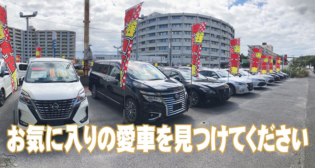 ラッキー自動車商会2店舗で展示されています。さらに展示準備中のくるまもたくさん!ぜひ販売員に声をかけて、お探しのくるまを見つけてください。