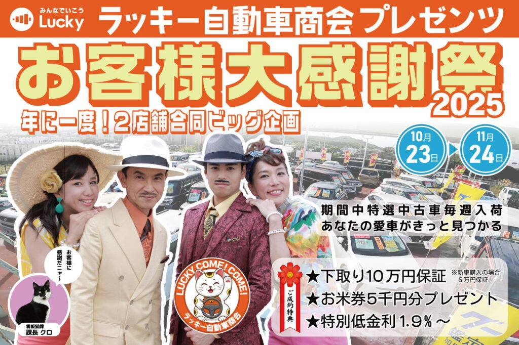 今年も年に一度のビッグ企画を開催!日頃からのお客様への感謝を込めて200台の中古車を特典とともに大放出します!ぜひこの期間中に素敵な愛車を見つけてください。